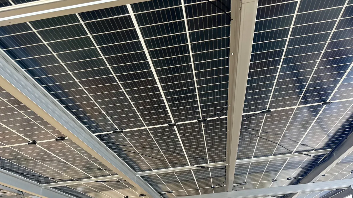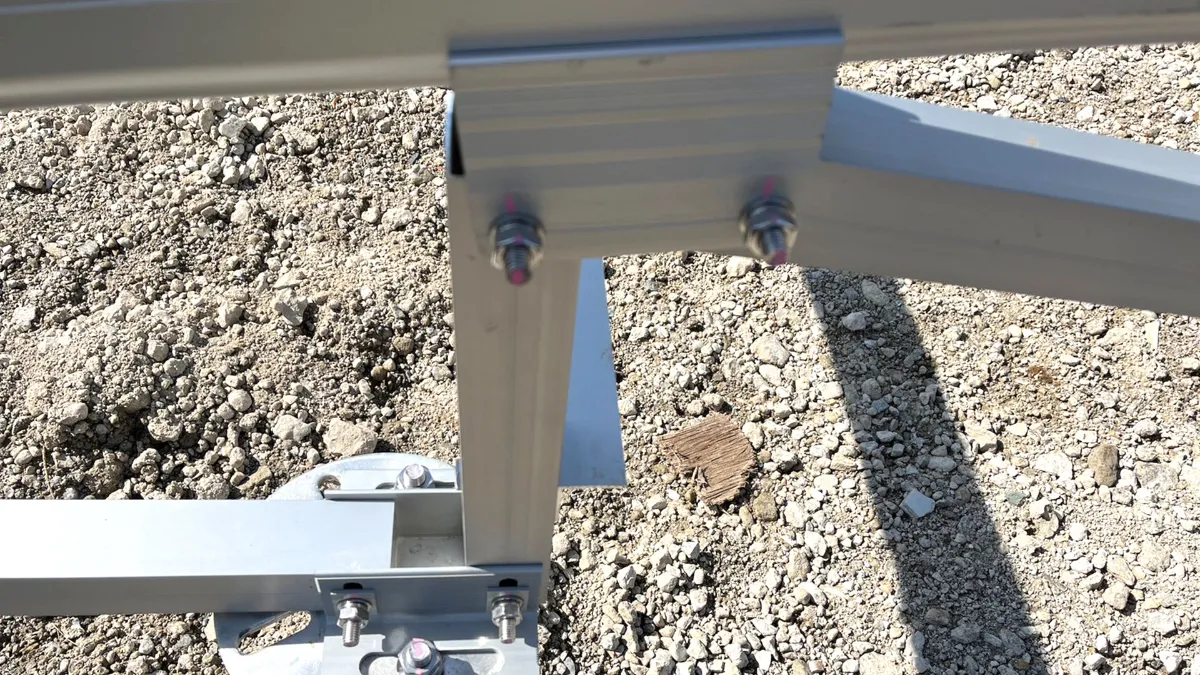 杭に架台を設置し、架台に太陽光パネルを設置していきます。トルクの締め付け確認を行い、強度が保たれていることを必ずチェックします。